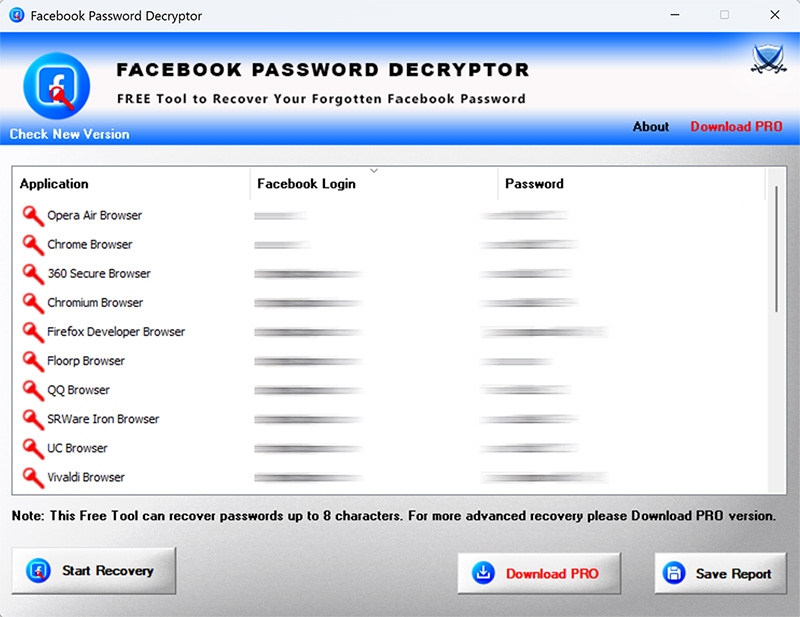| Support for recovery of Facebook login passwords from ALL profiles of Chrome & Firefox browser. |